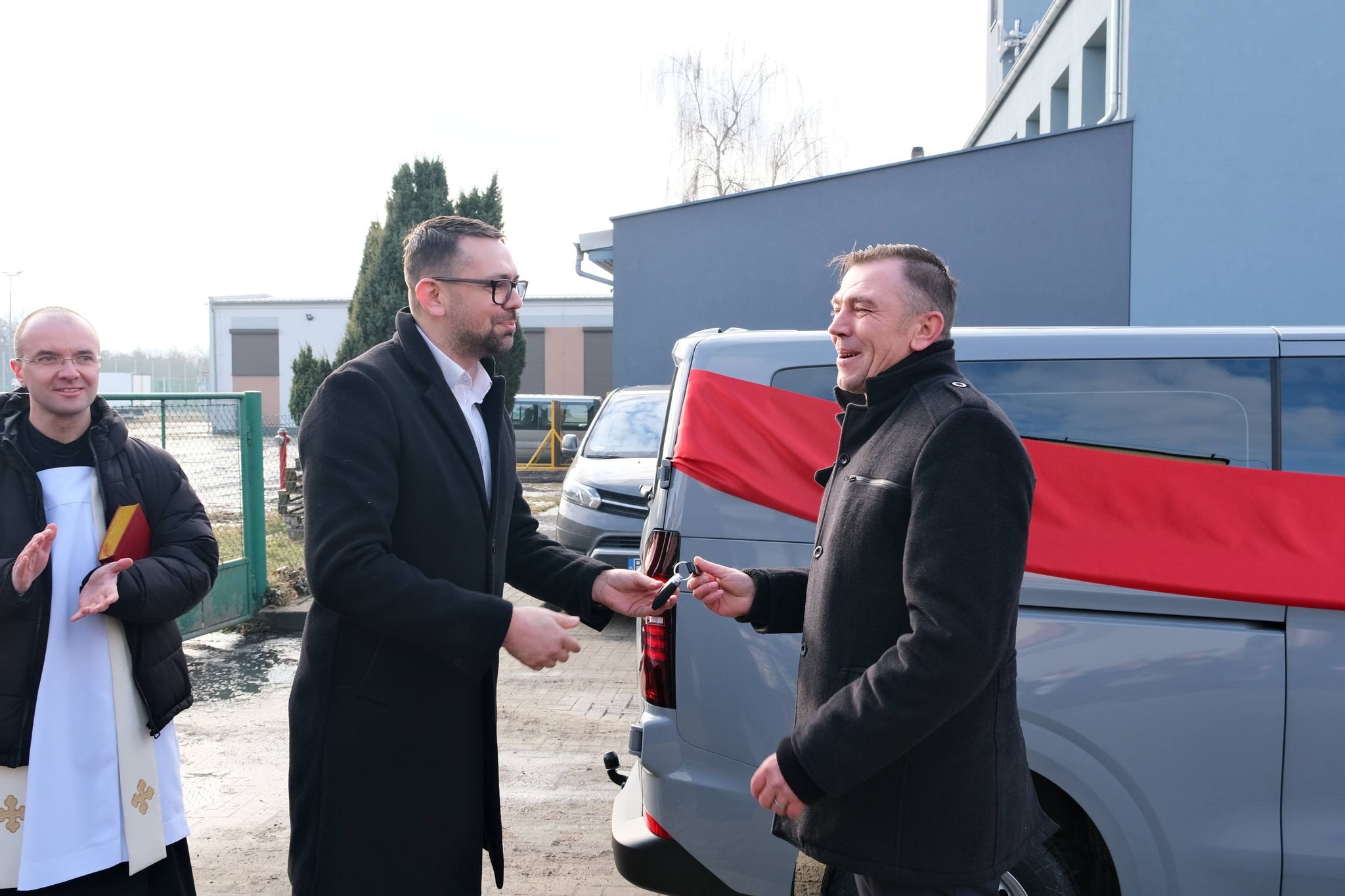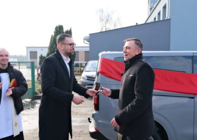 11 lutego 2026 r. w obecności Pani Anny Skupień – Dyrektora Oddziału Wielkopolskiego PFRON, Pana Artura Opasa – Starosty Kościańskiego, Pana Przemysława Kaczora – Burmistrza Miasta i Gminy Krzywiń, Pani Iwony Kamińskiej – Skarbnika Miasta i Gminy Krzywiń, Pani Hanny Frankiewicz – Przewodniczącej Rady Miejskiej Krzywinia, Pani Edyty Majsner – Przewodniczącej Komisji Oświaty, Kultury i Spraw Socjalnych, Ojca Daniela Wańczyka oraz rodziców i opiekunów uczestników nastąpiło uroczyste poświęcenie i oficjalne przekazanie na ręce Dyrektora Dominik Matelski busa na rzecz naszego Ośrodka.